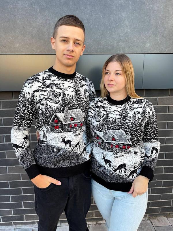 Светр новорічний різдвяний модель "будиночок" без горла чорний