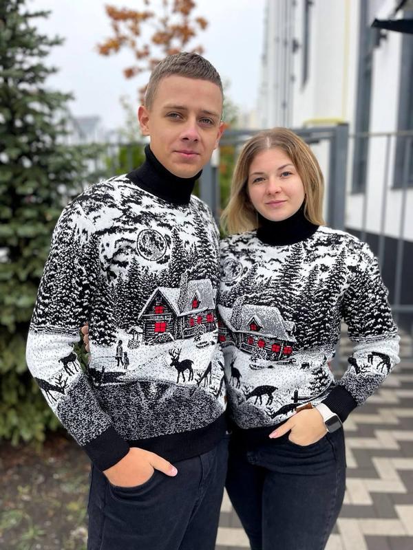 Светр новорічний різдвяний модель "будиночок" з горлом чорний