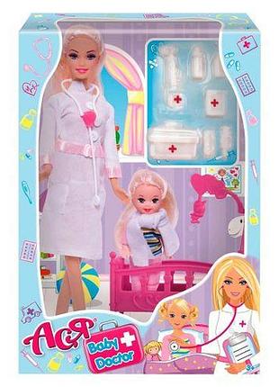 Красива лялька в білому лікарському халаті. Рухливі руки, ноги та голова. Також в комплекті є різні медичні інструменти та аксесуари, дитяче ліжечко та лялечка-пацієнт (10 см; рухомі ручки, ніжки та голова). Розмір ляльки-лікаря: 29 см. Упаковка: Коробка Колір: Різнобарв'я Вага з упаковкою: 350 г Габарити в упаковці: 7 x 32.5 x 23 см Країна виробник: Китай Матеріал: Комбінований Комплектація: Кукла, маленькая куколка, медицинские инструменты и аксессуары (9 шт), детская кроватка