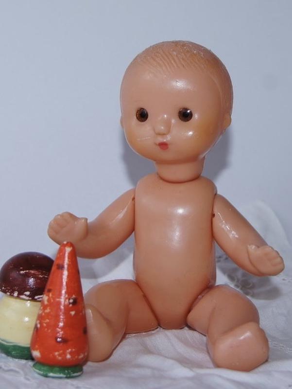 Милый мальчик, по-детски наивен и трогателен, - Яша, - кукла - пупс производства Загорской фабрики игрушек (Московская область) советского периода, 1970-е годы. Крепкий, пластмассовый, потому безопасный. Мечта любого ребенка ушедшей эпохи! Пупс средних размеров, высотой 18 см. Ручки, ножки и голова на резинке, двигаются свободно. Глазки из колкого пластика, статичные. Волосы - рельеф. Основная задача такого голопузика воспитать ответственность и развить материнский инстинкт: о куколке легко заботиться, на него можно шить одежду, взять в путешествие или на прогулку, легко купать. Симпатичный пухлик, изготовлен по ГОСТу, - такой поднимет настроение даже самому капризному ребенку, а также дополнит коллекцию винтажных игрушек! Состояние хорошее, в наличии фабричный вязаный комбинезон.