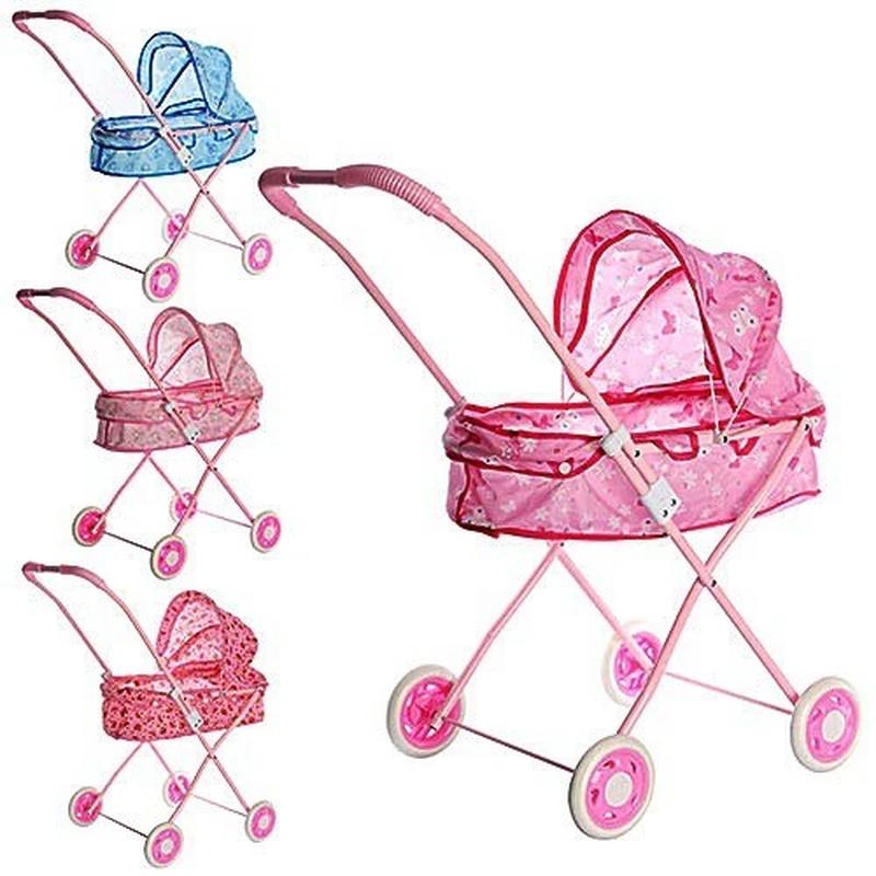 Коляска 882 для куклы, в зибр.уход 67*65*29см, 4 вида, металл., люлька 47*25см, складная, в пакете 68*35*10см
