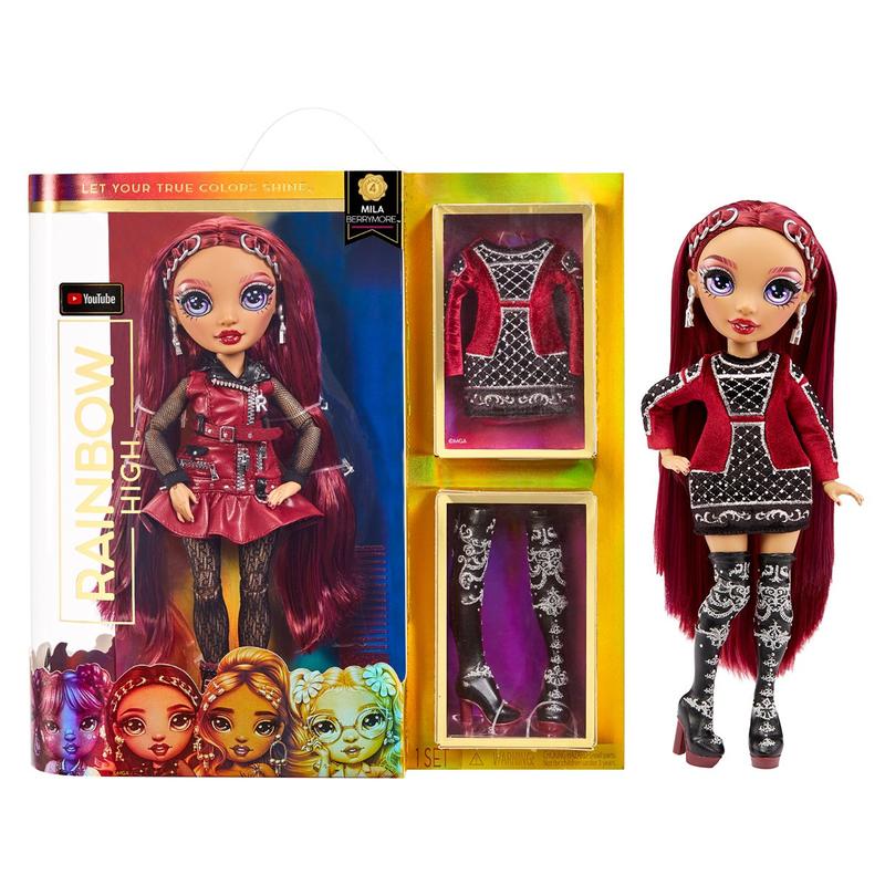 Зустрічайте нову колекцію лялечок RAINBOW HIGH! Нові подружки та улюблені персонажі у стильному вбранні різних кольорів. Зберіть їх усі та створіть свою модну та стильну веселку! Лялька RAINBOW HIGH S4 - МІЛА БЕРРІМОР - чарівна красуня з волоссям та одягом кольору бургунді. Особливості: - повна артикуляція ляльки; - довге розкішне волосся, яке можна розчісувати та створювати різні зачіски; - 2 комплекти одягу для ляльки – обирайте будь-який! - неймовірно гарні та виразні скляні очі зі «справжніми» віями; - модні аксесуари, які допоможуть створити яскравий та неповторний образ; - НОВИНКА! До комплекту входять 2 пари змінних ніжок для ляльки. Одні без рухомої стопи, для взуття на плоскій підошві, другі - з рухомим з'єднанням стопи, для взуття на підборах; До набору входять: - лялька; - 2 комплекти одягу; - 2 пари взуття; - пара знімних ніжок; - гребінець; - підставка. Рекомендовано для дітей віком від 6 років.