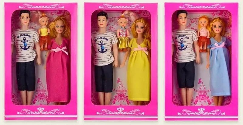 Игровой набор "Семья" понравится любому ребёнку. Комплект включает в себя: беременную куклу, кена и ребенка. Семья одета в яркие наряды, руки и ноги у игрушек подвижны. Набор предназначен для детей старше 3-х лет.
