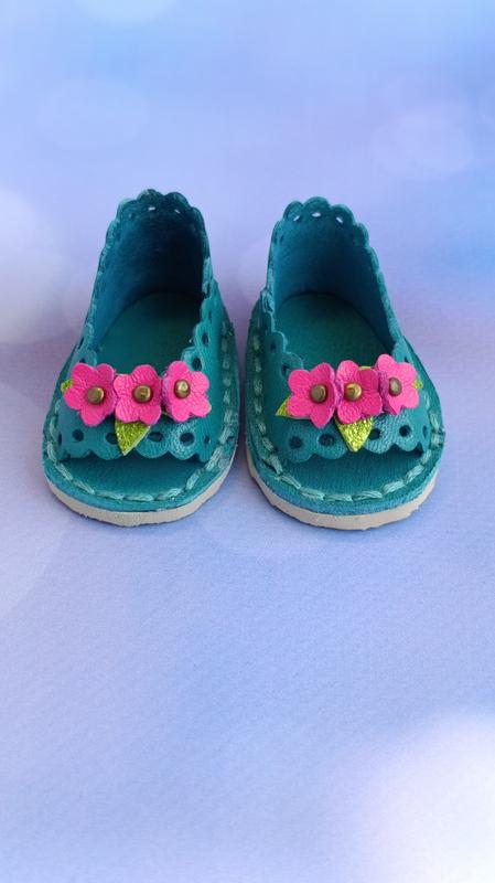 В наявності босоніжки з натуральної шкіри для ляльки Paola Reina, розмір 5 х2,5 см