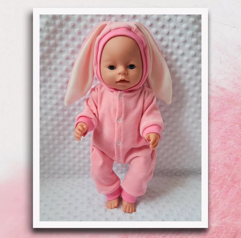 Комбінезон "Зайчик" для ляльки Бебі Борн 43 см. Пошитий з бавовняного велюру, м'який, приємний колір.