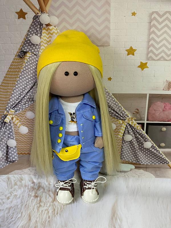 Текстильная куколка ручной работы, созданная из хлопка, рост 30см. Полностью подвижная,самостоящая, переодевается, можно делать прически