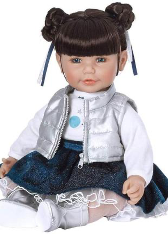 Outta This World и идеальный компаньон и друг, ToddlerTime Doll Cosmic Girl готова играть и захватить космическое пространство ... с вами! 20 ”от головы до ног, изготовлен из высококачественного винила Cuddle Me с ароматом детской присыпки, с подвижной головкой и ¾ винил руками и ногами. NEW Cuddle Me Vinyl мягкий, шелковистый, нежный и больше напоминает настоящего ребенка, что делает этих малышей идеальными для игры! Её утяжелённое тело в комплекте с подгузником для реалистичной игры, чтобы развить социальные навыки, одновременно занимаясь воспитанием, притворяясь игрой. Она одета в белую орбитальную футболку с длинными рукавами, под серебристый пухлый жилет с молнией спереди, блестящую полуночную синюю юбку со слоем оборок по краю гребешка и белыми брюками. Ее серебряные книги вышли из этого мира! и ее очаровательные двойные заплетенные космические булочки акцентированы синими и серебряными лентами. Гладкие темно-каштановые волосы Cosmic Girl с челкой дополняют ее красивые голубые глаза и сладкие румяные щеки. Куклы Adora ToddlerTime имеют отличия Adora! Испытаны на безопасность, нетоксичны, гипоаллергенны, отмечены наградами и изготовлены с любовью. Для детей от 6 лет.
