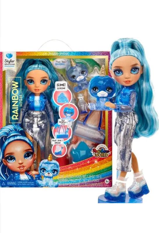Лялька Rainbow High Skyler серії Slime Лялька Рейнбоу Хай Скайлер – це стильна красуня, одягнена у свій фірмовий синій з голови до ніг з безліччю блискіток. У неї чудові, деталізовані риси обличчя, красиві довгі сині волосся, довгі вії та скляні очі, а її обличчя мерехтить чарівними блискітками. Лялька Rainbow High Skyler повністю шарнірна, її голова, руки, кисті та ноги згинаються у різні пози, включаючи шпагат. У набір входять: 1 лялька 28 см, 1 пара взуття, 1 комплект одягу, 1 гребінець, 1 сумка, 1 улюбленець, 1 слайм, 1 шимер, 1 підставка для ляльки. Рекомендовано для дітей віком від 4 років. Серія Classic Rainbow High складається із 6 ляльок у стильних образах.
