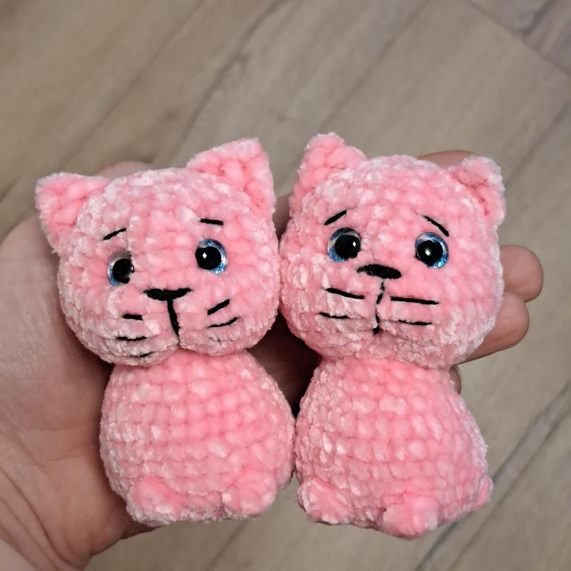 Невероятные котята. Милые, маленькие, позитивные. Корм покупать не надо. Не вредят. По столах не лазять. Диваны шить коготками не будут. Их удобно взять деткам в ладонь или даже положить в карман и маленький котенок буле всегда рядом. Высота ±8 см Глаза на безопасном креплении Наповнювач холлофайбер Возрастная категория: от 3х лет Срок выполнения 48 часов в наличии оба розовых котика цена 300 грн за 1 клика