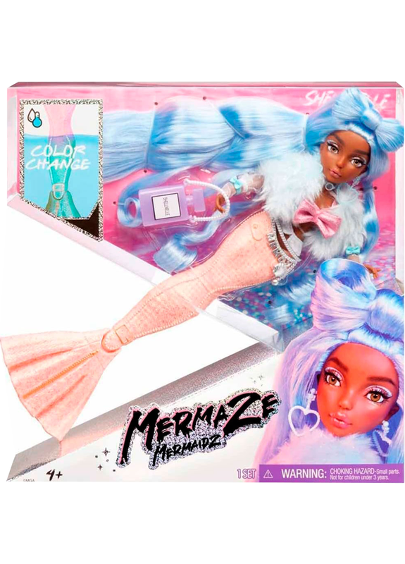 Следуй за сказочными плавниками кукол-русалок Mermaze Mermaidz, чтобы открыть для себя нечто удивительное! Куклы Mermaze Mermaidz способны менять цвет своих русалочьих хвостов при соприкосновении с холодной водой. Эти фактурные хвосты имеют устойчивое основание, которое поворачивается на 90 градусов. Поэтому куклы могут стоять, опираясь на плавник. Точки артикуляции на шее, локтях, запястьях, талии, туловище и плавнике куклы позволяют им принимать множество поз. Каждая кукла имеет уникальный стиль и набор аксессуаров. Кукла Mermaze Mermaidz Shellnelle - модельер, создающая тренды. Даже ее имя, созвучное со словом "раковина" - Шеллнелл - перекликается с именем модного бренда Chanel. Черты лица куклы - великолепны: выразительные глаза с мерцающими тенями, длинные ресницы, фантазийный макияж. Образ дополняют длинные волосы, собранные в бант на затылке. Shellnelle искусно создает модные образы, дополняя их аксессуарами. Элементы одежды легко комбинируются между собой и с нарядами других кукол Mermaze Mermaidz. Хвост куклы меняет свой цвет с нежно-розового на бирюзовый при контакте с ледяной водой. В игровом наборе: Кукла Mermaze Mermaidz Shellnelle Комплект одежды Аксессуары: сумочка в форме флакона парфюма Chanel, перчатки, пояс Бижутерия Высота куклы: 34 см Рекомендуемый возраст: 4-12 лет