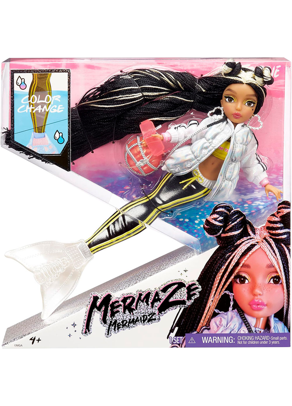Следуй за сказочными плавниками кукол-русалок Mermaze Mermaidz, чтобы открыть для себя нечто удивительное! Куклы Mermaze Mermaidz способны менять цвет своих русалочьих хвостов при соприкосновении с холодной водой. Эти фактурные хвосты имеют устойчивое основание, которое поворачивается на 90 градусов. Поэтому куклы могут стоять, опираясь на плавник. Точки артикуляции на шее, локтях, запястьях, талии, туловище и плавнике куклы позволяют им принимать множество поз. Каждая кукла имеет уникальный стиль и набор аксессуаров. Кукла Mermaze Mermaidz Jordie увлечена спортом и способна преодолеть самые высокие волны! Черты лица куклы - великолепны: выразительные глаза с мерцающими тенями, длинные ресницы, фантазийный макияж. Образ дополняют длинные волосы, заплетенные во множество косичек. Jordie демонстрирует свою любовь к спортивной моде во всем, включая аксессуары. Лучшее доказательство тому - ее оригинальная сумка в виде спортивного мяча. Элементы одежды легко комбинируются между собой и с нарядами других кукол Mermaze Mermaidz. Хвост куклы меняет свой цвет с черного на светло-серебристый при контакте с ледяной водой. В игровом наборе: Кукла Mermaze Mermaidz Jordie Комплект одежды Аксессуары: сумочка в форме спортивного мяча, солнечные очки Бижутерия Высота куклы: 34 см Рекомендуемый возраст: 4-12 лет