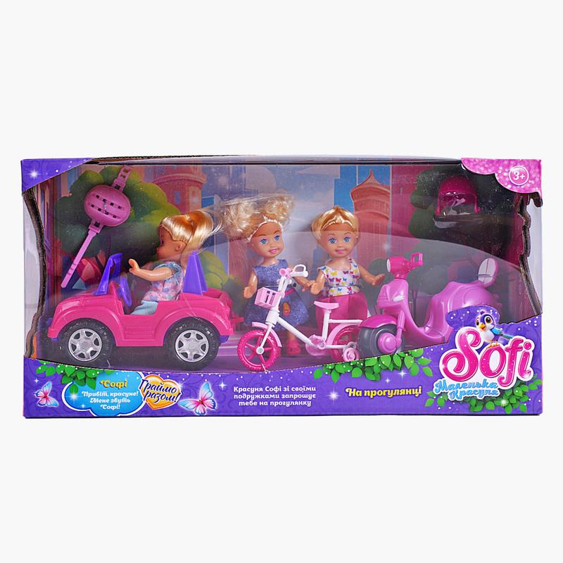 3 куклы, машина, мопед, велосипед, 2 шлема, в коробке