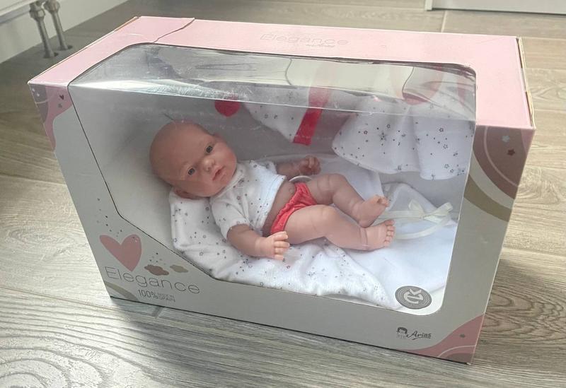 реалистичная кукла младенец от испанского бренда Arias, серия Elegance. Она изготовлена из высококачественного винила, что обеспечивает приятную на ощупь текстуру и подробную имитацию кожи. Голова, ручки и ножки куклы имеют тщательно проработанные детали, что делает ее похожей на настоящего ребенка.