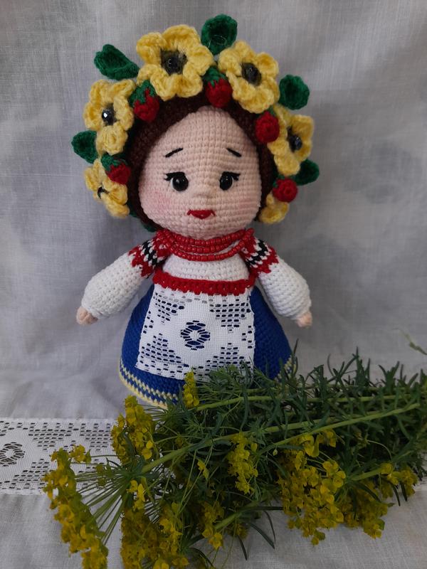 Кукла украиночка ручной работы,рост 23 см.Наполнитель холлофайдер,нить джинс.высокий уровень исполнения,детализированная.Подходит для сувенира и в качестве игрушки для грани.