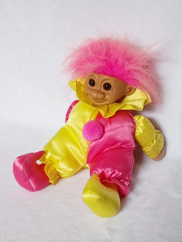 Винтажная кукла троля Руса Берри 80-х годов, розовые волосы, атласный костюм клоуна-голубая, 10 дюймов, новый размер