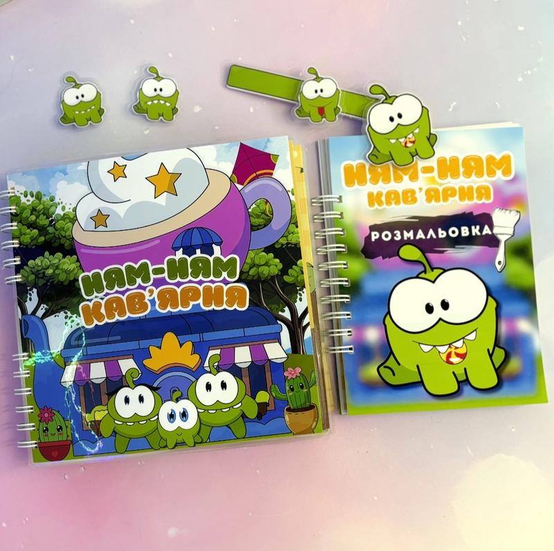 Мега альбом Ам Ням кав'ярня+будиночок на липучках 👍🤗. Більше 100 відривних елементів на липучках 👍. Формат 21х21см + маска Ам Ням, яку можна приміряти на себе 👍. Можливо також замовити подаруноковий тематичний бокс Ам Ням: 🍬Альбом 21х21см 🍬Розмальовка А5 🍬Альбом А6 🍬Подарункове упакування Пишіть в особисті-скину відеоогляд👍 Кріплення - металеві кільця ‼️ Дивіться також інші мої оголошення 🤗