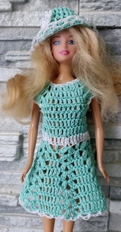Вязаное платье для Барби с шляпкой.
