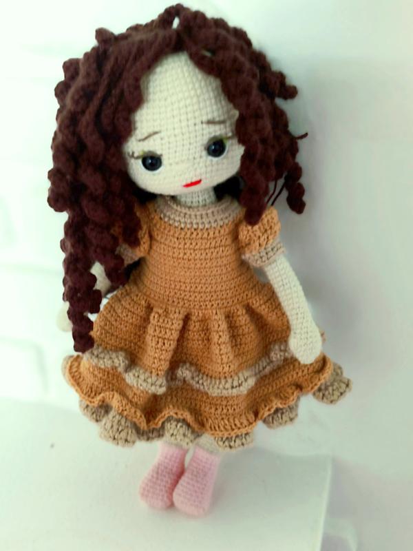 Куколка хэнд мей сплетена крючком пряжа хлопок, очки на безопасном креплении, снанёт отличным подарком для маленьких и больших принцесс. цвет василька и одежды может быть изменен по вашим пожелателям.