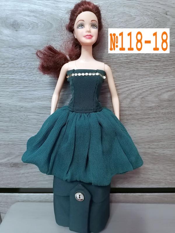 Платье на куклу Барби и ей подобных длиной 29 см ручной работы. Застегивается на липучке. Номер платья 118 Оплата на карту или через безопасную оплату. Доставка укрпошта, нова пошта. ОБРАТИТЕ ВНИМАНИЕ! В связи с тем, что теперь снимается процент не менее 15 грн, я не поднимаю цену на отдельный товар, а только будет дополнительно добавлено 15 грн к сумме покупки, если общая сумма заказа меньше 150 грн.