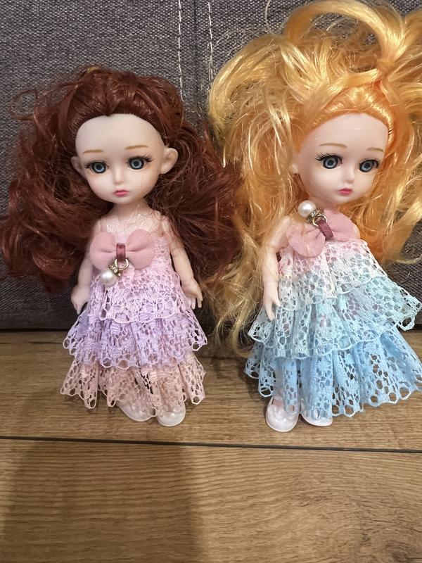Шарнірні ляльки, ніжки і ручки згинається. Взуті і одягнені, волосся не заплутане шовкове кучеряве. Стан нові ціна за одну