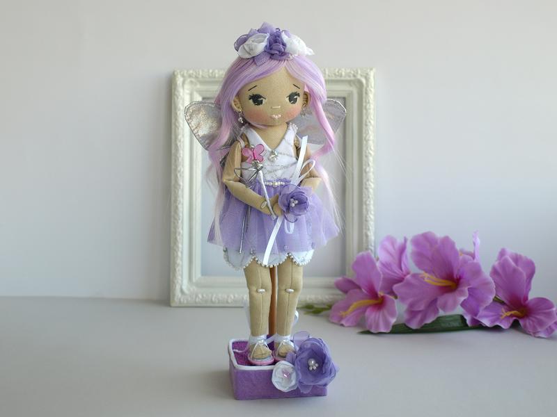Кукла фея Рост 24см Ручная работа. Кукла пошита из плотной ткани, приятной на ощупь. Одежда и обувь снимается. Подставка идет в комплекте. Куклой можно играть, но понравится не только детям.