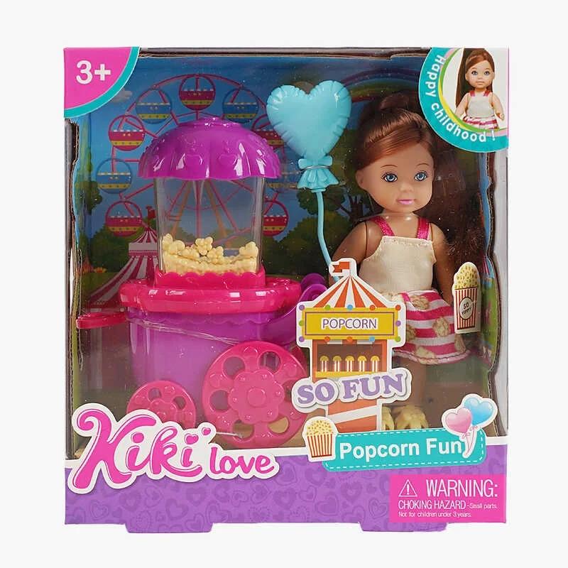 Очаровательная кукла с машинкой для попкорна и воздушным шариком