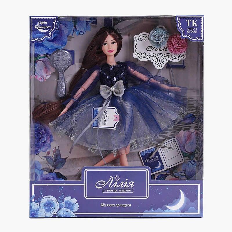 Очаровательная Кукла Лилия - Лунная Принцесса Погрузитесь в мир фантазий вместе с потрясающей принцессой Луны "Лилия" от "TK Group". Эта кукла подарит каждому ребенку возможность окунуться в сказочную страну, где царят волшебство и увлекательные приключения. Особенности: - Кукла имеет благородные черты лица, которые очаровывают с первого взгляда. Ее миндалевидные карие глаза, изящный носик и привлекательная улыбка придают ей уникального очарования. - Шелковистые волосы можно расчесывать и создавать разнообразные прически, придавая ей различные образы. - Лунная принцесса одета в роскошное вечернее платье цвета ночи, украшенное блестящими серебряными нитями и пайетками. - Образ дополняет большой атласный бант на поясе, подчеркивающий ее королевский наряд. - В набор входят расческа для волос и два чудесных цветочных бутона. - Кукла изготовлена из высококачественного пластика, имеет множество точек артикуляции: руки сгибаются в локтях и запястьях, ноги - в коленях. Высота куклы составляет 30 см.