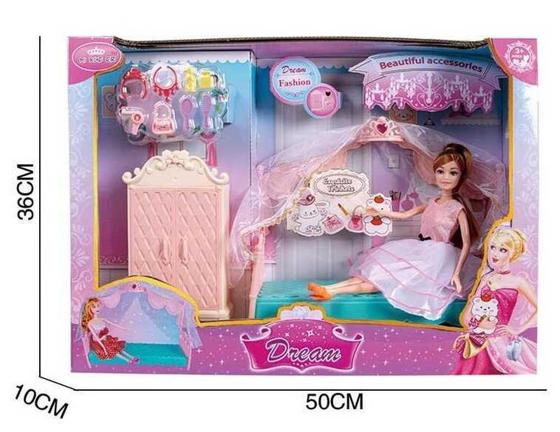 Кукла "спальня мечты" 8619 (18) с кроватью, шкафом и аксессуарами