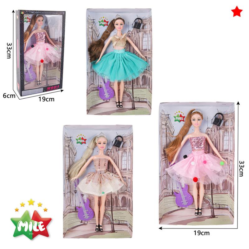 Игрушка кукла модница с гитарой и бумбоксом в ассортименте 33х19 см. товары для девочек.