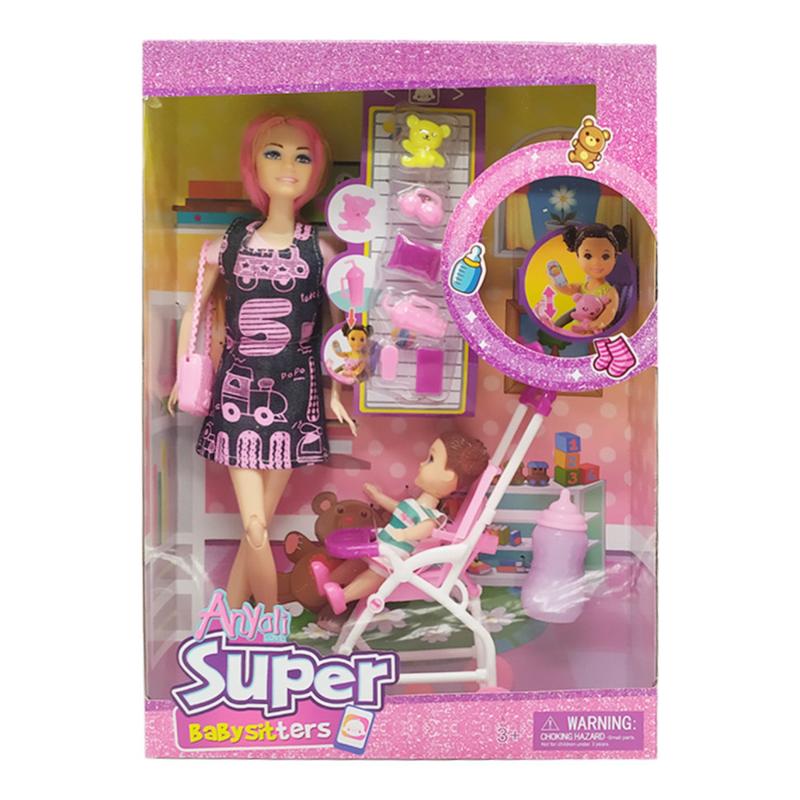 Кукла в наборе В комплекте: - кукла - маленькая кукла - тележка - бутылочка - аксессуары 2 вида Упаковка: коробка Милая куколка с шарнирами в коленях - это замечательный подарок для девочки. В набор входят аксессуары, которые помогут разнообразить игру, такие как коляска, бутылочка, игрушка и прочее. Игры в куклы способствуют развитию мелкой моторики, воображения и коммуникативных навыков. Все детали изготовлены из безопасных материалов.
