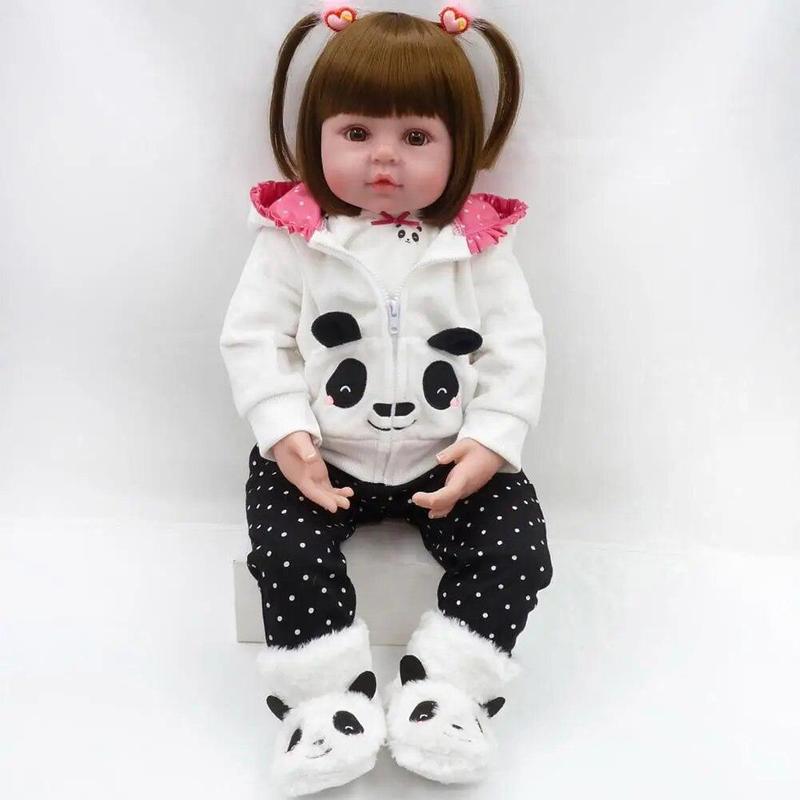 Кукла реборн девочка панда представляет собой имитацию ребёнка-младенца, выполненную максимально реалистично. Кукла реборн выполнен из экологически чистых и высококачественных материалов. Рост куклы 47 см, вес 1 кг. В комплекте: подарочная коробка, одежда как на фотографиях, магнитная соска, подгузник, бутылочка, свидетельство о рождении (не заполненное, можно вписать любое имя). Кукла Реборн выглядит как настоящий младенец: создана из экологически чистых и безопасных материалов. Расписана вручную акриловыми красками (не тускнеют со временем). Карие глазки из высококачественного акрила, обрамленные густыми ресничками, покоряют сердце с первого взгляда. Глаза открытые, кукла не моргает. Гнущиеся ножки и ручки: Ножки и ручки куклы сделаны из высококачественного силикон-винила. Тело - мягконабивное (из текстиля и наполнителя). Ножки легко можно повернуть в нужное положение в районе бедер, а ручки в районе плеча. Кукла может сидеть и лежать (не может стоять), её голова, ручки и ножки крутятся. Колени и локти не сгибаются.