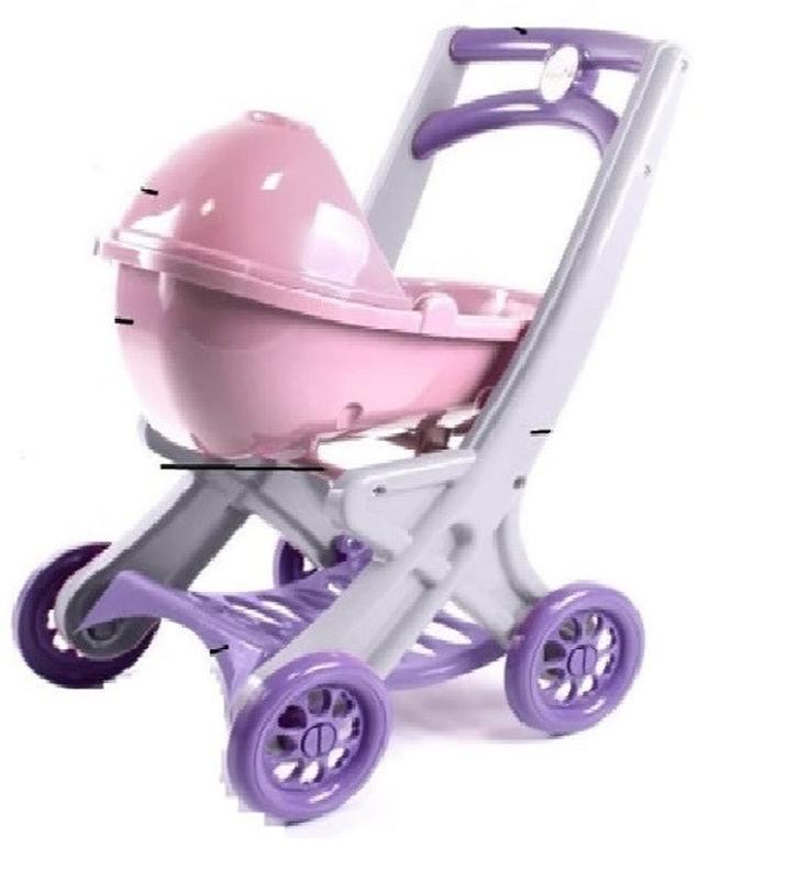 Якісний пластик, яскраві кольори. Візок для перевезення ляльок у лежачому положенні. Розміри коляски: 43х32х57 см. Розміри люльки: 35х20х12 см. 4 пластикові колеса (d=13 см.). Для дітей віком від 3-х років