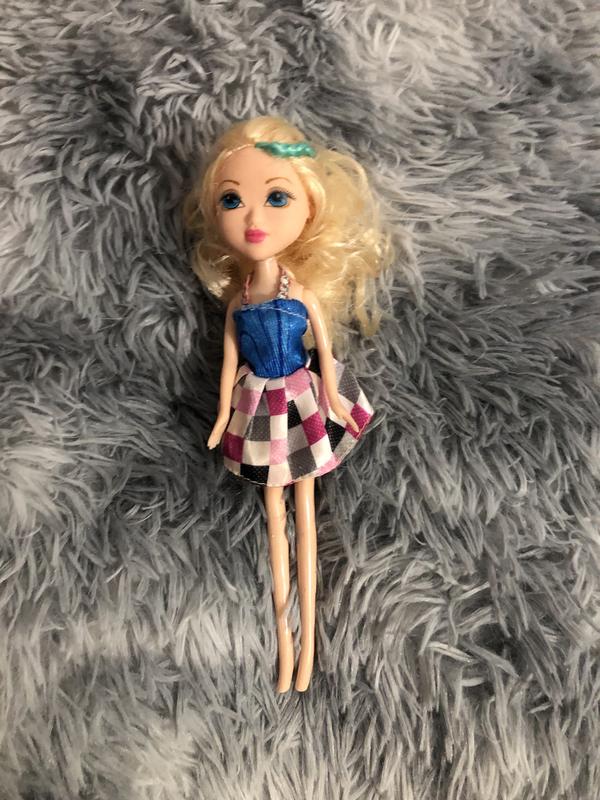 Лялечка з пишним волоссям з зеленим пасмом, сплетене в косичку. Лялечка одягнута в сукню та блискучий жакет. Довжина ляльки 24 см. Стан ідеальний