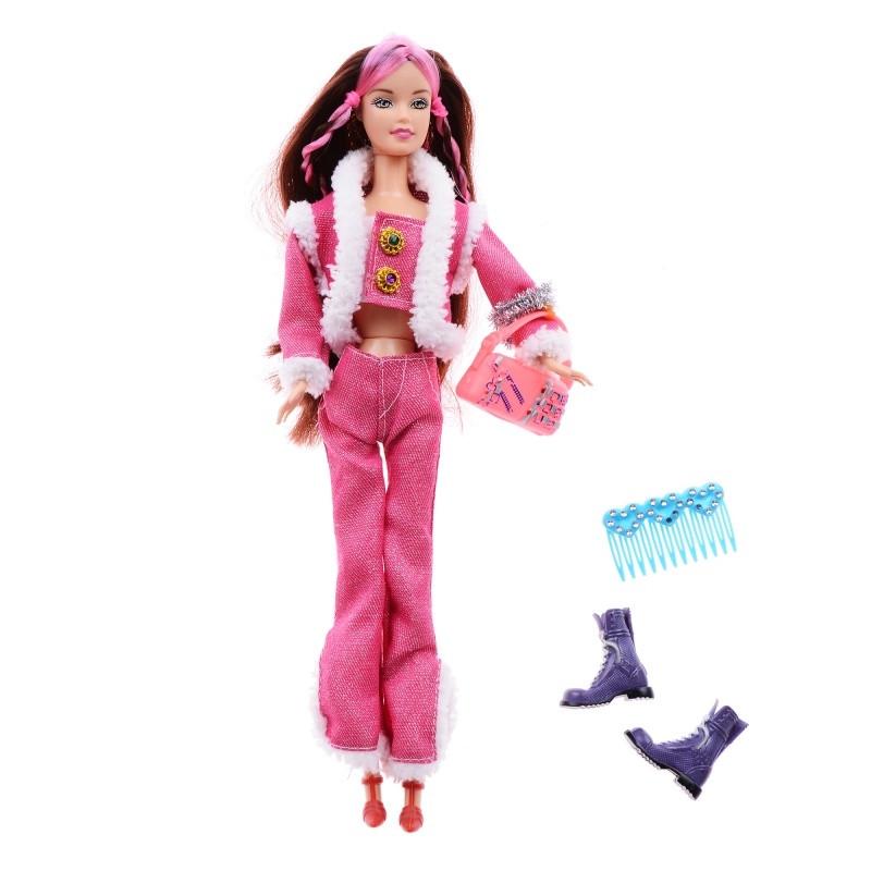 Такая кукла это миниатюрная версия настоящей модницы. Кукла будет лучшим подарком, о котором ребенок мечтает каждый день. Кукла одета в красивый теплый розовый костюм, а в руках у нее маленькая сумочка. У нее коричневые волосы с розовыми прядями. Благодаря фантазии вашей крохи, можно придумать множество интересных и захватывающих сюжетов для игры. Чтоб девочке было веселей играть, она может пригласить в игру подружек. Вместе они могут придумывать и создавать неотразимые образы и стили для своих кукол. Для этой куклы можно сшить множество новых нарядов, в которых она сможет ходить в гости, на прогулки, и посещать разные мероприятия. Также девочки могут создать среду обитания для куклы, например, построить для нее место отдыха и проживания. Благодаря небольшим размерам куклы, ее можно везде брать с собой, в поездки, на прогулки, в гости. С такой куклой ребенок сможет весело и интересно провести время, а главное ни на секунду не заскучать. Кукла изготовлена из пластика, безопасного для здоровья ребенка. Рекомендуется для игры девочкам старше 3 лет. В комплект входит: Кукла - 1 шт.; Сумочка - 1 шт.; Сапоги - 1 пара.