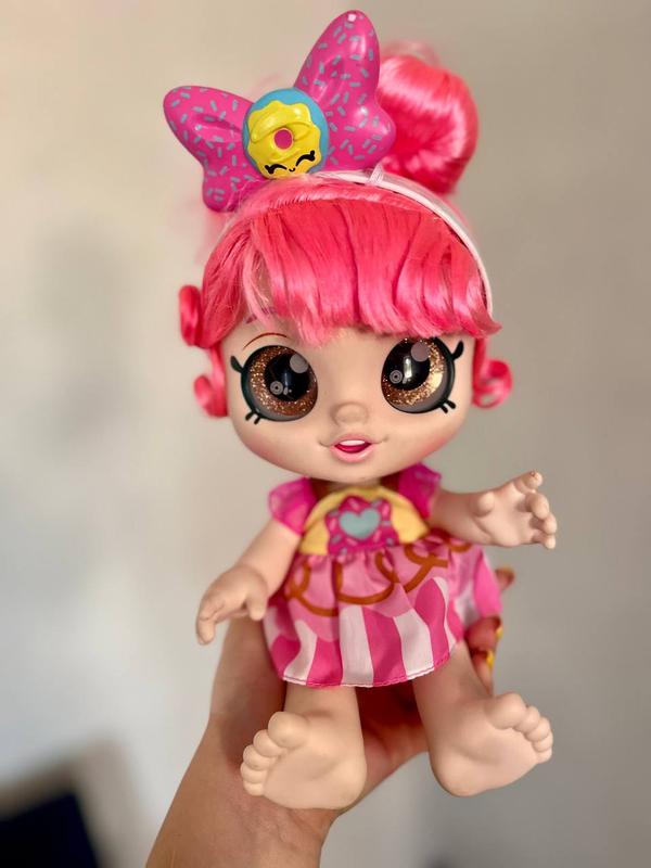 Лялька Kindi Kids Донатина із серії Snack Time Friends. • Особливості: У ляльки рухлива голова ("bubble head"), яка похитується під час руху, створюючи ефект "пожвавлення". Також у неї великі блискучі очі. •Підходить для дітей віком від 3 років. •Донатина виконана в стилі пончика з глазур'ю, має яскраве рожеве волосся і вбрання у відповідній тематиці.
