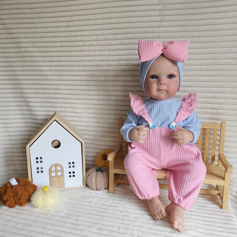 Шапочка кофточка и штаны на подтяжках одежда для реборна 45 - 50 см