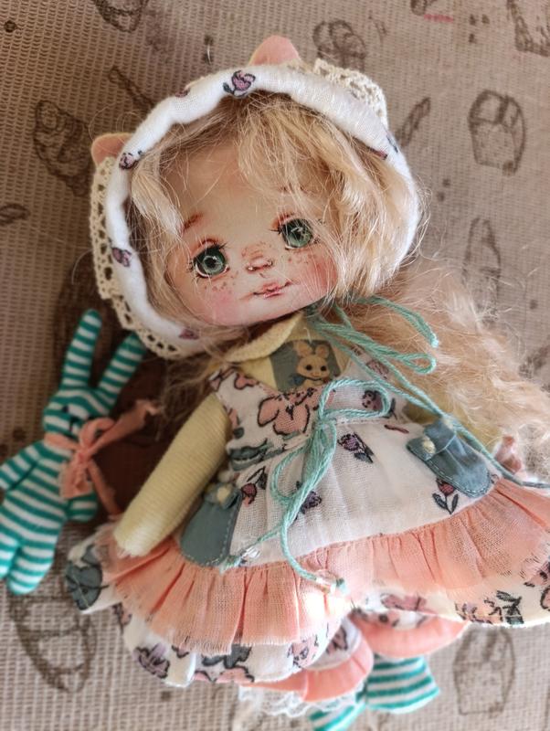 Игрушка изготовлена из ткани, рост 18см, одежда из натуральной ткани, куклу можно переодевать, делать прически, отличный подарок, интердерное украшение.
