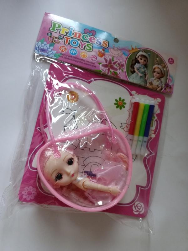 Набор из очень красивой куколки в сумочке с фломастерами и раскраской. Отличный подарок для маленькой принцессы на день рождения или другой праздник)