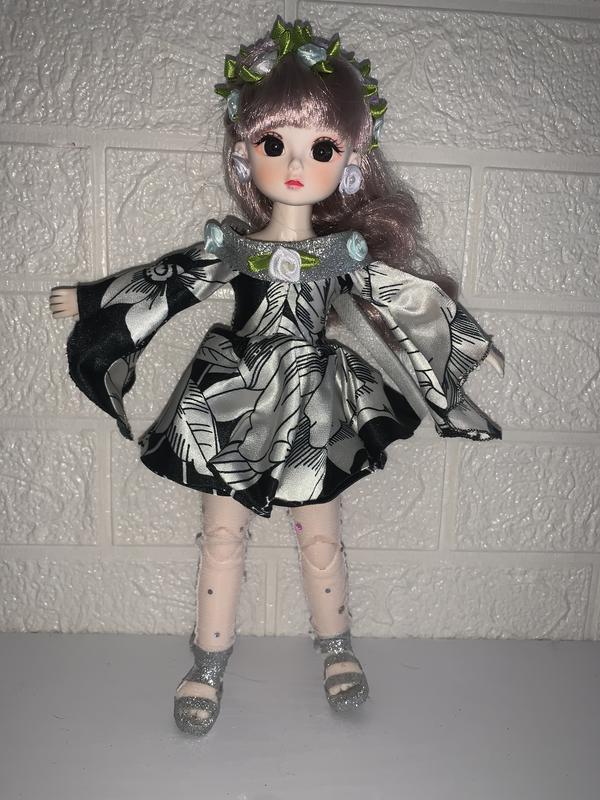 Лялечка шарнірна 30 сантиметрів. Густе волосся, гарно прошите. Сукня на блискавці, панчохи, босоніжки, квіточки встромлені у голову, за потреби зроблю віночок ! Одяг зручний до переодягання!