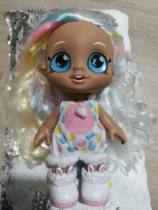 кукла Kindi Kids Dress Up Friends Марша Мелло Зайчонок. Это кукла с большими блестящими глазами и качающейся головой, производимая компанией Moose Toys. Модель Марша Мелло Зайченок одета в костюм зайчика с пушистым хвостиком. Куклы Kindi Kids предназначены для детей старше 3 лет. Вона имеет обувь Эта кукла является частью серии Kindi Kids, которая включает в себя разных персонажей и игровые наборы. Привезена из Европы,стан прекрасен