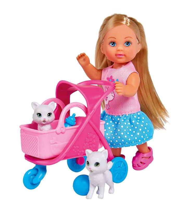 Кукольный набор Эви "Коляска для любимцев" Simba 5733348 Кукольный набор Эви "Коляска для любимцев" с котятами и аксессуарами. Эви выгуливает котят в удобной коляске. У котят есть игрушки. Высота куклы 12 см