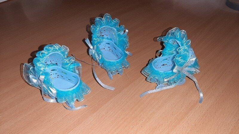 Уважно читайте умови пересилки! Пересилка товара укроштой на сумму от 150 гривен с Оплатой на карту. Безопасным заветом пересашиваю товар на сумму от 300 гривен. На передвижные элементы безопасной оплатой не пересасываю, только полная оплата на карту. Пересласка товара новой по почте от 200 гривен, оплата только на карту. Перед любой покупкой, любого товара писать продавцу для уточнения Коляска голубая детская игрушка или сувенир Размер 7 х 9см. Изготовлена из пластика, материи и украшений. Нова. Цена указана за 1 игрушку.
