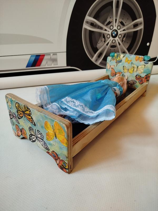 Дерев'яне ліжко для ляльок типу барбі.