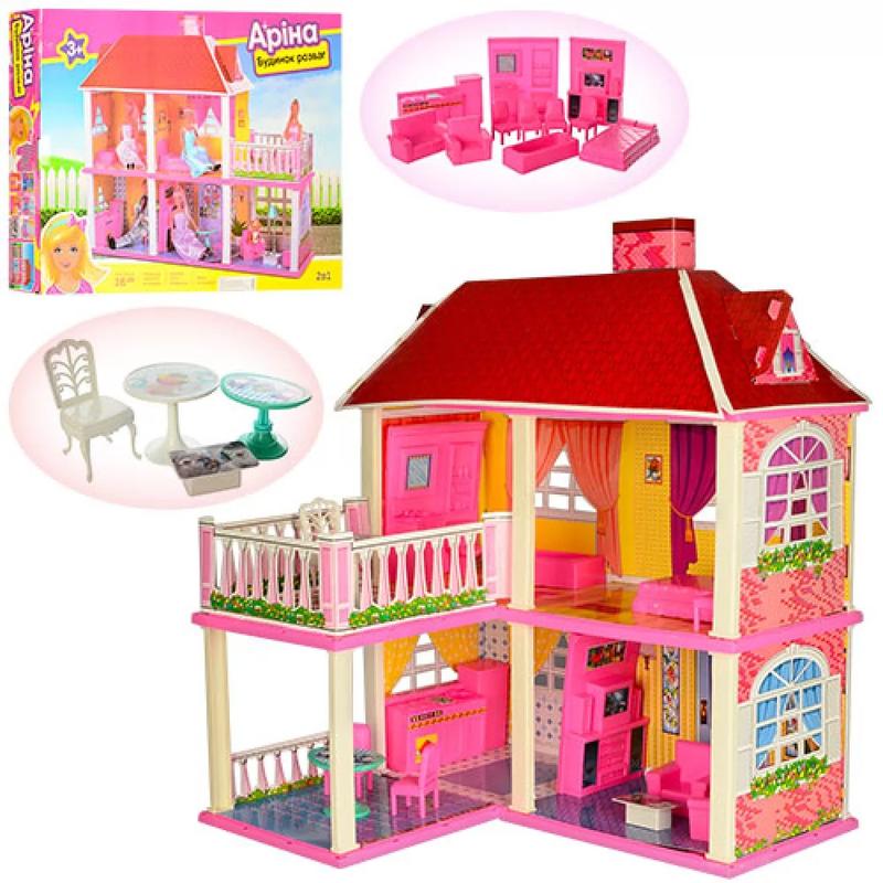 Двухэтажный Домик 6980 - перед заказом, пожалуйста, уточняйте наличие (оптовый состав). Это мечта каждой девочки, которая любит проводить время со своими куклами. Эта игрушка оснащена разными мебелью и верандой, что делает игровой процесс более увлекательным и веселым. Все элементы этого набора выполнены из качественного, прочного и гипоаллергенного сырья, которое является полностью безопасным для детей. Так что, купив Домик 6980, вы подарите своему ребенку море прекрасного настроения и массу неописуемых эмоций, которые останутся в памяти ребенка на долгие годы. Размер коробки 63*50см Рекомендовано для детей от 3 лет. Характеристики: В комплекте: - домик. - Подушки. - Приставной стол. - Шафи. - Стульяцы. - Кресла. - Кровать. - Лампе. - Холодильник. - Банна. - Столик. - Туалет. - Комод с домашним кинотеатром Размер домика: Длинная коробка: 25,5 см. Ширина коробки: 83,5 см. Высота коробки: 70 см. Размер упаковки: Длинная коробка: 10 см. Ширина коробки: 62 см. Высота коробки: 48 см. Материал: высококачественный пластик, картон. Поставляется в коробке. Описание: В большом вместительном доме для кукол (16 см - до 29 см) - пять комнат и веранду. С одной стороны комнаты открыты, что очень удобно для игры. С второй - фасад с окнами и входной дверью. Они открываются и закрываются. В доме два варианта сборки – прямоугольный и угловой. Мебель входить у комплект. Собирается двумя способами