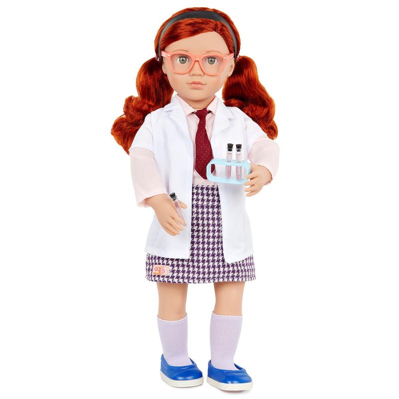 Большая кукла Сиа Our Generation 46 см Кукла Сиа - изобретательница и одна из фантастических кукол Our Generation. У нее есть кукла-близнец по имени Сабина. Главная особенность куклы - это книга сказок, благодаря которой историю можно пересказать, а великолепные костюмы и аксессуары делают игру еще увлекательнее! Эта игрушка развивает воображение детей и помогает им осваивать сюжеты, ролевые игры, эстетику и новые навыки. Куклы Generation изготовлены из высококачественного винила и набиты мягким наполнителем. Одна из уникальных особенностей кукол - реалистичные пропорции, как у настоящего ребенка. Это связано с тем, что бренд Our Generation - это отход от классического идеала куклы Барби. Куклы имеют реалистичный внешний вид и ощущаются на ощупь. Одежда кукол выполнена в нежных, спокойных цветах. К некоторым куклам прилагаются дополнительные наборы одежды и аксессуаров, так что можно собрать коллекцию или изменить образ куклы. Игра с куклами Our Generation учит детей ответственности и заботе о других, развивает коммуникативные навыки. Играя, дети развивают воображение и творческие способности, создавая новые образы и истории. Характеристики куклы Our Generation: - Тип: Кукла - Серия: DELUXE - Возрастная группа: от 3-х лет - Количество предметов: 25 шт - Комплектация: кукла, пара очков, платье, куртка, рубашка/блузка, юбка, пара носков, закладка, книга, галстук, головной убор, 2 пары обуви, ожерелье, микроскоп, 3 пробирки, лабораторная колба, лабораторный стакан - Элементы питания: отсутствуют - Особенности: с аксессуарами, с книжечкой - Материал: пластик - Высота: 46 см - Размеры упаковки: (ВхШхГ) 51 х 31 х 13 см - Вес с упаковкой 1.76 кг.