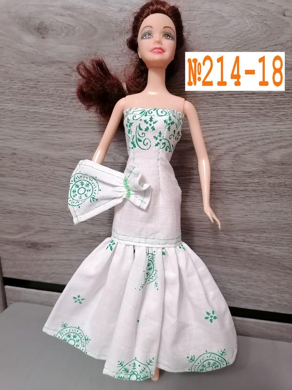 Платье на куклу Барби и ей подобных длиной 29 см ручной работы. Застегивается на липучке. Номер платья 214 Оплата на карту или через безопасную оплату. Доставка укрпошта, нова пошта. ОБРАТИТЕ ВНИМАНИЕ! В связи с тем, что теперь снимается процент не менее 15 грн, я не поднимаю цену на отдельный товар, а только будет дополнительно добавлено 15 грн к сумме покупки, если общая сумма заказа меньше 150 грн.