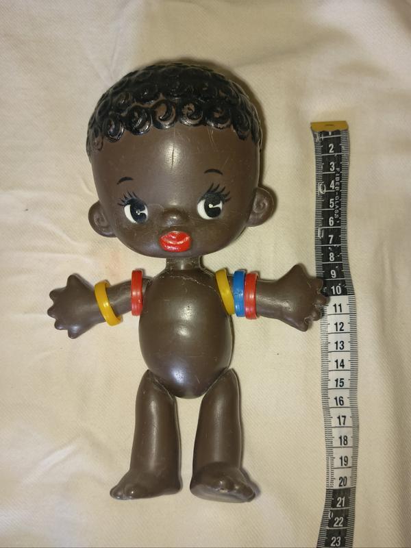 Кукла пластмассовая 22 см длина (негреня). Все части тела двигаются.