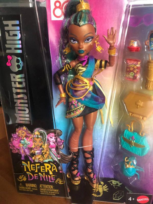лялька кукла Monster High Nefera De Nile Кукла Monster High Нефера Де Нил, королевская мумия в платье с питомцем-скарабеем и 7 аксессуарами: сумочкой, ноутбуком, солнцезащитными очками, напитком и закусками, оригинал, новая, в наличии есть 2 штуки