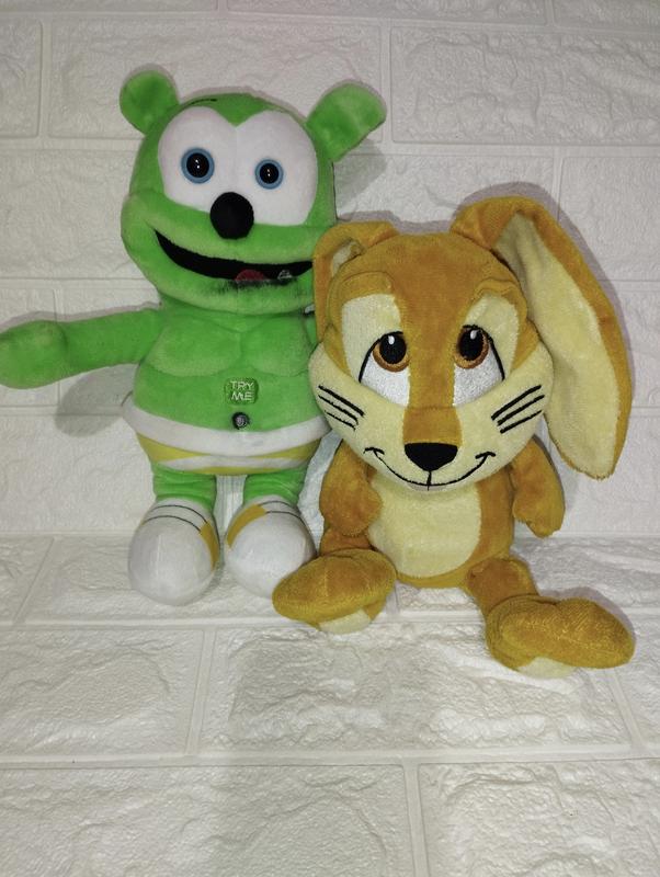 игрушки б/в. Продаж набором 2 игрушки. Высота мишки 27 см, имеет загрязнения на губе, в цену учтены.