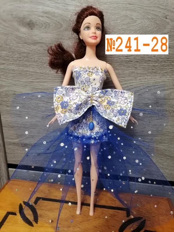 Платье на куклу Барби и ей подобных длиной 29 см ручной работы. Застегивается на липучке. Номер платья 241 Оплата на карту или через безопасную оплату. Доставка укрпошта, нова пошта. ОБРАТИТЕ ВНИМАНИЕ! В связи с тем, что теперь снимается процент не менее 15 грн, я не поднимаю цену на отдельный товар, а только будет дополнительно добавлено 15 грн к сумме покупки, если общая сумма заказа меньше 150 грн.